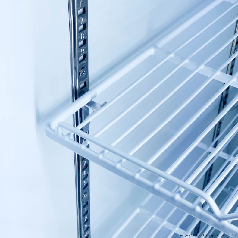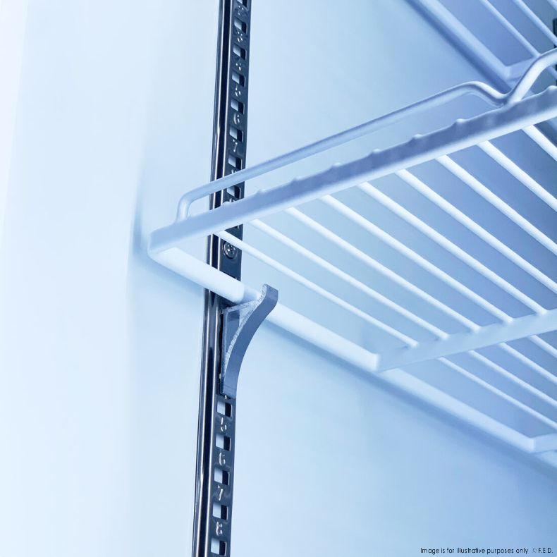 This single glass upright door fridge is one of our premier fridges straight from the doors of Federal Hospitality Equipment. This visually striking unit is built to fit snugly into tight corners and spaces to store, cool or freeze your stock and ingredients, whether it’s fitting stock in your store front for customers to grab snacks, meals or drinks or ingredients in your back fridge. This narrow, refined piece is especially suited to restaurant kitchens, supermarket backrooms, takeaway stores and café store fronts.